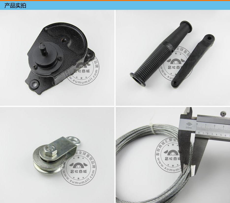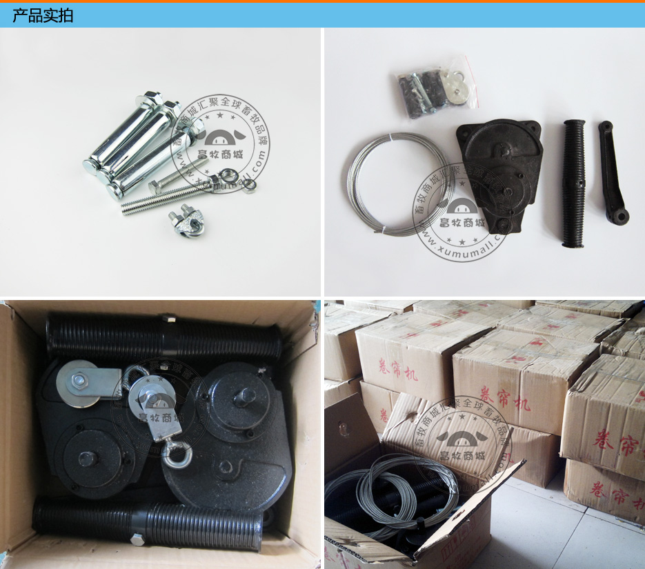 产品信息: 名称:卷帘机 产品规格: 重量6.8kg,球墨铸铁材质 产品配件: 绞轮主机,滑轮,膨胀丝,套筒圆管,钢丝绳 产品特点: 1.主体齿轮可承重150-200kg。 2.铸铁材质,表面光滑处理,手感好。 3.加厚卷线筒,更耐用。 配套卷帘布一起使用。 卷帘机铸铁材质,2台/箱.重量15kg/箱。每幅卷帘左右各一台.配件:大绞机.润滑轮.把手.套管圆筒.钢丝绳=15米.内附安装说明书一份。