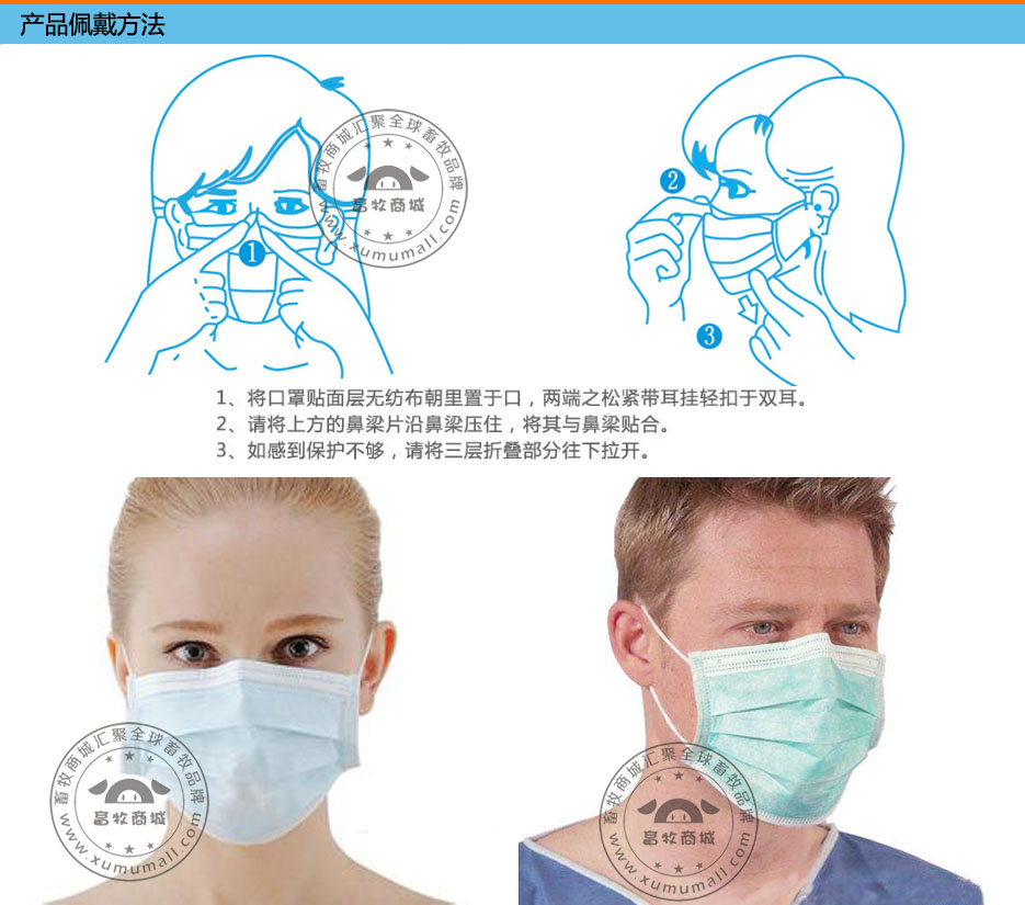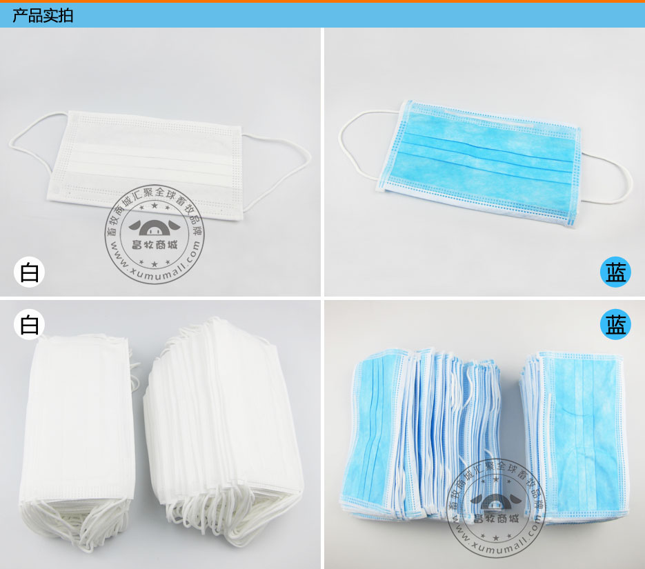 产品信息: 名称:一次性口罩 产品特点: 1、产品采用蓝色或白色医用无纺布经超声波热合点焊,上带等工艺制成。 2、口罩质地柔软,佩戴舒适,过滤效果大于95%,无杂无味,对皮肤无刺激。 3、内置铝条可以弯曲以适应不同脸型的人戴用,提高密封效果。 4、优质高弹耳带,长时间穿戴不紧绷,无过敏反应。 能有效阻隔病菌、灰尘、异物等进入人体口腔及呼吸道,防止交叉感染。去除空气中的有害气体、异物、恶臭等。 适用于:农业、消毒、制药、电子、纺织、无尘室操作人员及家庭防护用。