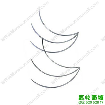 不锈钢材质,全弯形状,配合缝合线使用。