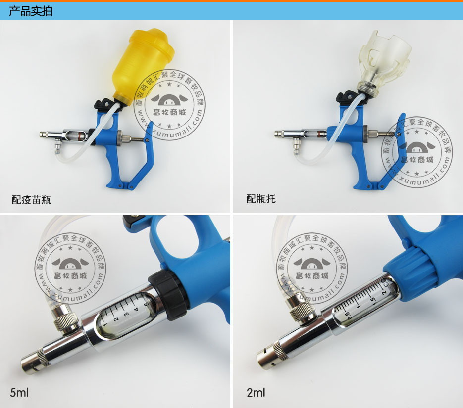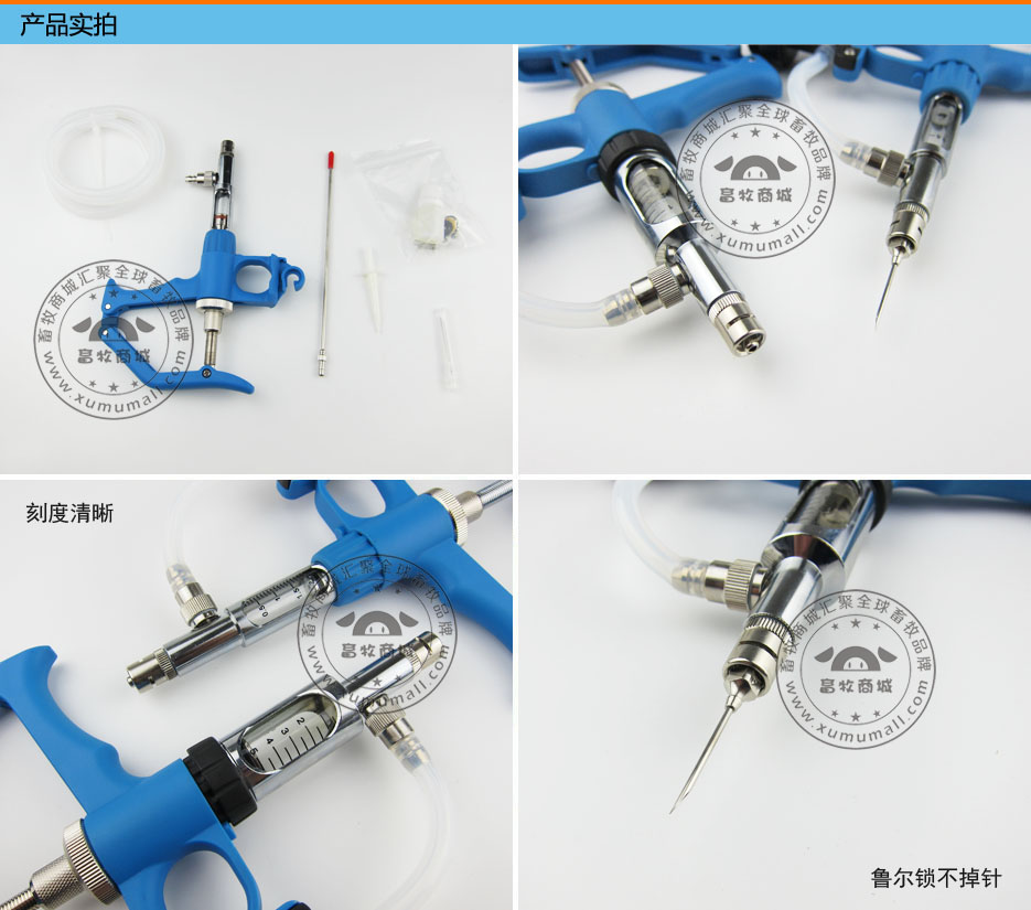 产品信息:名称:多功能连续注射器产品规格:2ml的最小刻度0.1ml5ml的最小刻度0.5ml产品特点:1.手柄采用高分子材料制作,手感舒适。2.主体部分纯铜电镀,结实耐用防腐蚀。3."鲁尔锁"金属螺旋接口,牢牢锁住针头不脱落。4.双功能设计,可以连接吸药管,也可以插接疫苗瓶。5.玻璃针管,刻度清晰精准,可以打油性疫苗,使用寿命长。