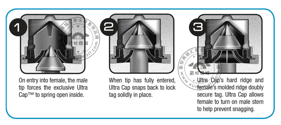 ● Self-piercing tip of an Allflex Male tag locks tight into the Ultra Cap or the Rotaclip.