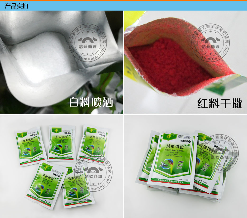 产品信息: 名称:蝇子药(蝇蚊杀,灭蝇霸,灭蝇药) 1包也发货,10包包邮 使用方法: 干用1. 开打包装干撒地上,一分钟即可见效,持效期30天。 湿用2. 取1包兑水30斤,充分摇匀,喷洒在害虫落脚处,一分钟即可见效,持效期30天。 1袋100g,一箱100袋 注意事项: 远离餐具、食物、储量、饲料等,并且避免儿童接触。 使用范围: 养殖场、饭店、家庭、宾馆、餐馆、食品厂、厕所、垃圾堆等场所。