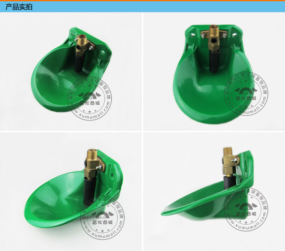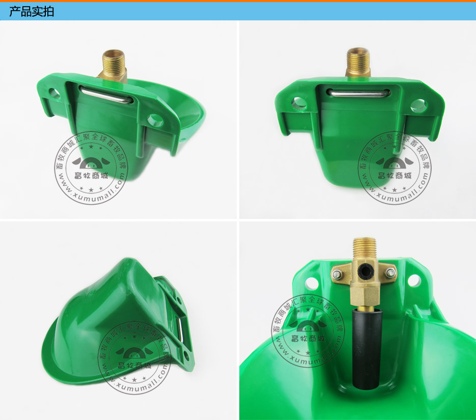 产品信息: 名称:羊用饮水碗 产品参数: 最高处:16.3cm,最大直径为18cm 净重:542g 产品特点: 工程塑料材质、耐腐蚀、好清洗、不撒水、减少潮湿,节约用水; 黄铜阀芯及水管接头,全新PP塑料; 标准的常用水管接口,1/2"-14NPT螺纹接口,与外径为20mm的内螺纹水管连接;