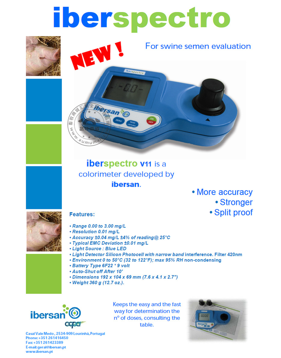 产品信息: 名称:葡萄牙精子密度仪 产品参数: 测试范围:0.00-3.00mg/L(波长420-590纳米带自动调节功能) 使用环境:平方室温0-50℃,湿度0-95% 光扰误差率:<0.02 透光系数范围:0.0-2.0 分辨率为:0.01mb/L 光源:蓝色LED灯 电池类型:6F22*9volt 尺寸:192×104×69mm 重量:360g 在25℃时读数精确度可达±0.04mg/L±4% 特有的电磁兼容性偏差在±0.01mg/L 适应于0-50℃的环境;最高95%的相对湿度无结露