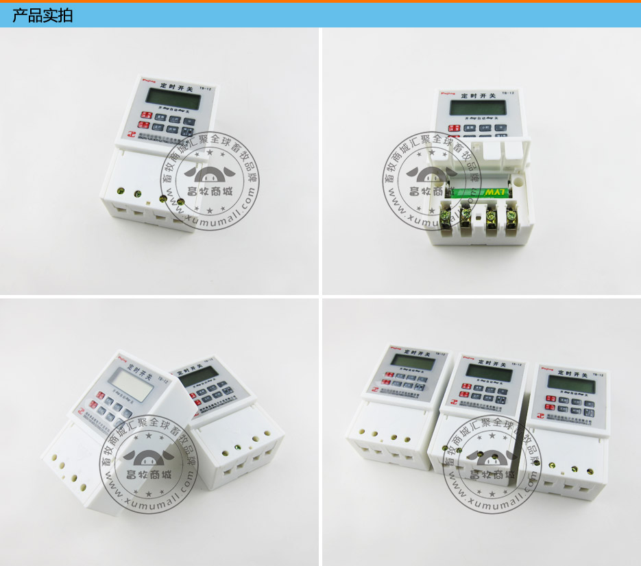 产品信息: 名称:定时开关 产品参数: 额定电压:220V/50Hz 时控范围:1分-168小时(7天) 设定次数:每天10组编程控制 控制周期:可日控或周控循环(可实现每天不同定时设置) 计时误差:<±0.5秒/天 使用温度:-30℃——50℃ 安装方式:导轨式或壁挂式 外行尺寸:115*75*52mm 防潮防尘性强 产品功能: 本产品能根据用户设定时间,自动打开和关闭各种电器设备的电源。 广泛用于鸡舍、种植、养殖等行业的照明、换气、大养、供水等场合的自动控制,具有省时,省电的特点。