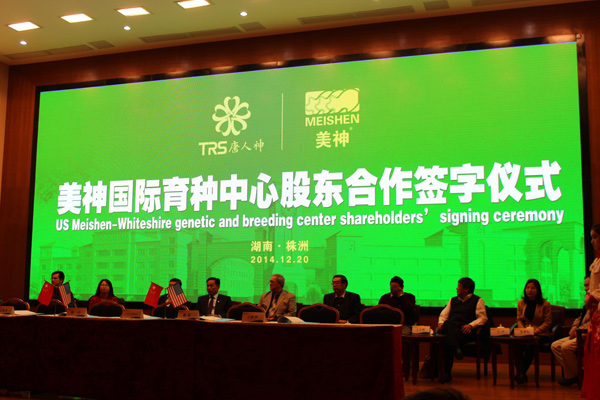 2014年12月20日,在湖南株州举行的中美育种(第四届)国际联盟高峰论坛上,由唐人神集团股份有限公司、正大集团、温氏集团和雏鹰集团联合控股,与美国华特希尔(Whiteshire Hamroc)育种有限公司合作的美神国际育种中心股东合作签字仪式隆重举行。同期还举行了产学研全基因组测序分子育种合作签字、美神国际育种联盟授牌仪式等活动。