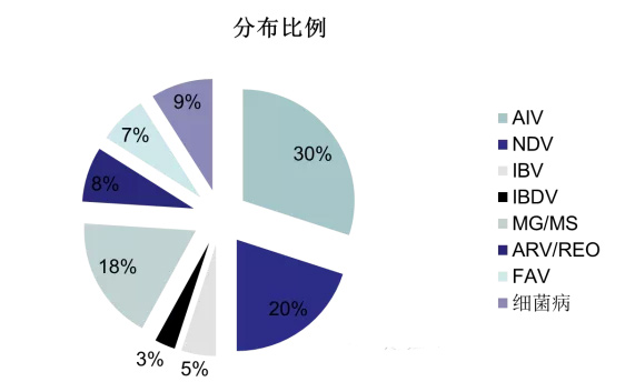 病毒以多重感染为主,流感和新城疫尤为突出