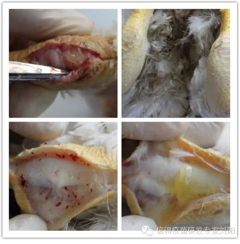15年3月份以来,东北、安徽、河南、山东等地蛋鸡和肉鸡送检的病料中,付关节病例明显增多,主要表现瘸脚,单侧伸腿,付关节肿胀等,剖检发现皮下滑膜增厚、水肿,关节液增多,有的呈黄色干酪样或豆腐渣样,付关节处淤血重。