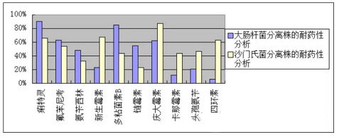 图8 大肠杆菌与沙门氏菌分离株的耐药性分析