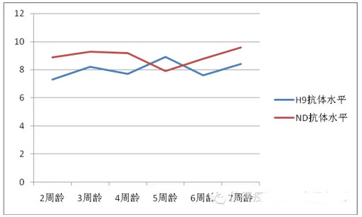 图5 不同的周龄商品肉鸡H9、ND抗体水平