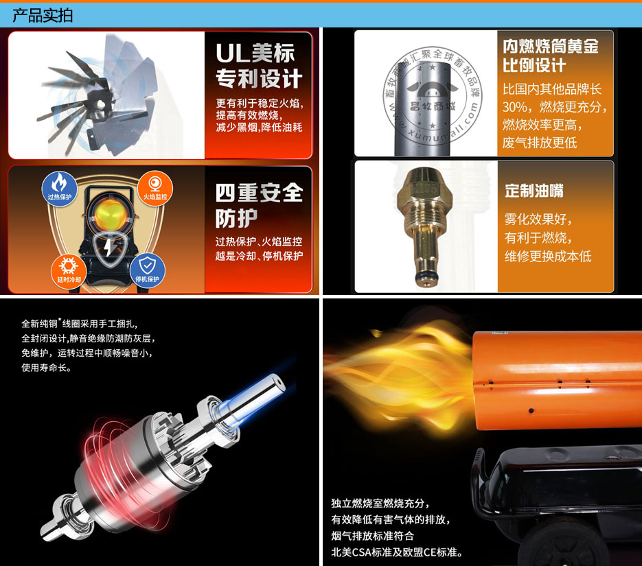 产品信息: 名称:燃油热风机 产品特点: •直燃型热风机,使用柴油或者煤油; •不锈钢燃烧室,气体雾化燃烧,燃烧效果好; •全自动电子点火,配有过热保护装置,过热停机; •光电感应器自动检测火焰燃烧状况,异常情况自动停机; •自动控温,设定温度,自动停机和自动启动,不需人工值守; 产品范围: 畜牧养殖场所,农业种植大棚、温室的临时加温或者补充加温 厂房、仓库,机器设备加温,工人工位取暖 基建、地坪、内装,建筑冬季施工,水泥浇铸等施工场所的临时加温干燥 户外抢险施工及其他任何需要加温的场所。