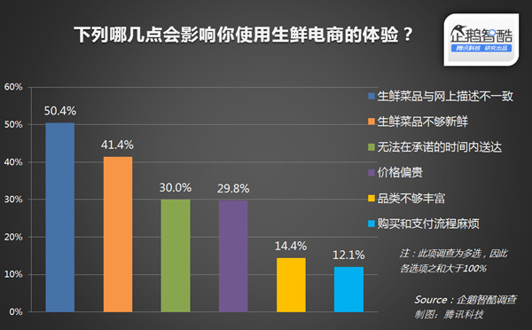 值得一提的是,介意价格贵的用户仅占三成。可以说,用户虽然期望能够买到低价的生鲜,但如果能够保证生鲜的品质和新鲜程度,偏高的价格也并不会对用户的体验造成太大伤害。