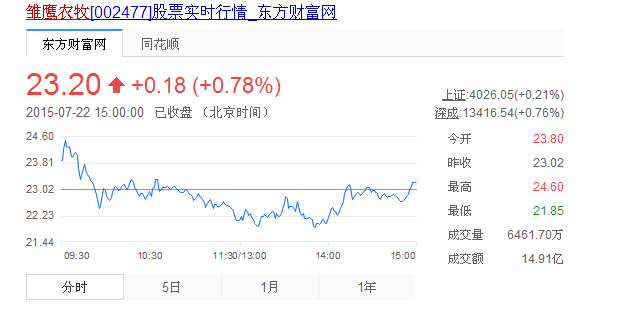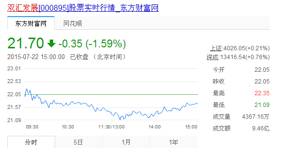 7月22日双汇发展股票行情